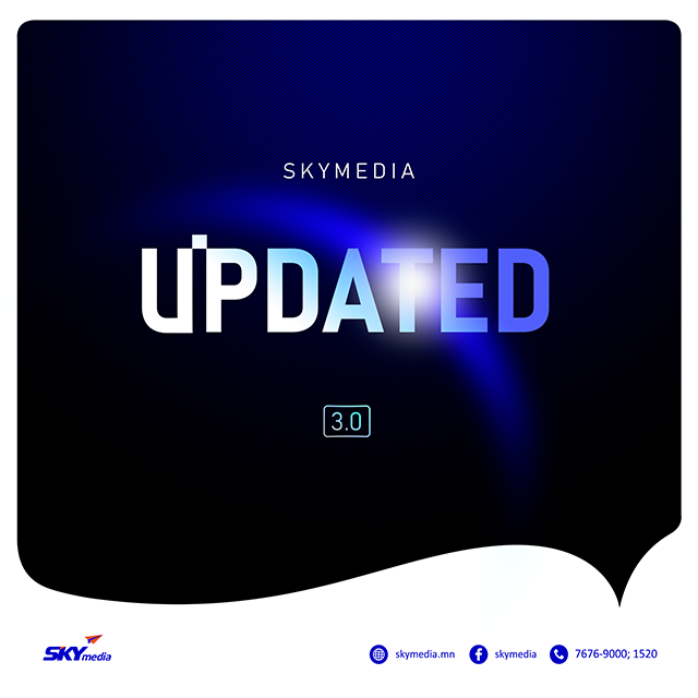Хөгжилд төгсгөл, шинэчлэлд хязгаар үгүй. СКАЙмедиа IPTV үйлчилгээ илүү ухаалаг, ашиглахад таатай болон шинэчлэгдлээ. Хэрэглэгч та СКАЙмедиагийн шинэчлэгдэн сайжирсан 3.0 системд тавтай морил.
