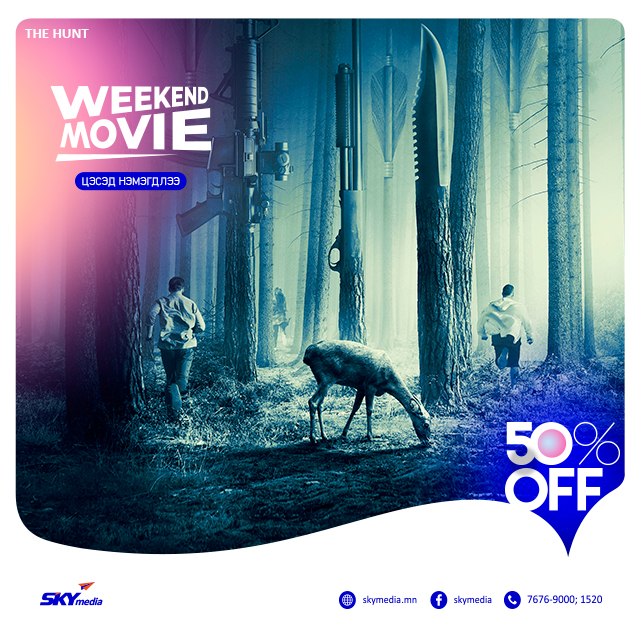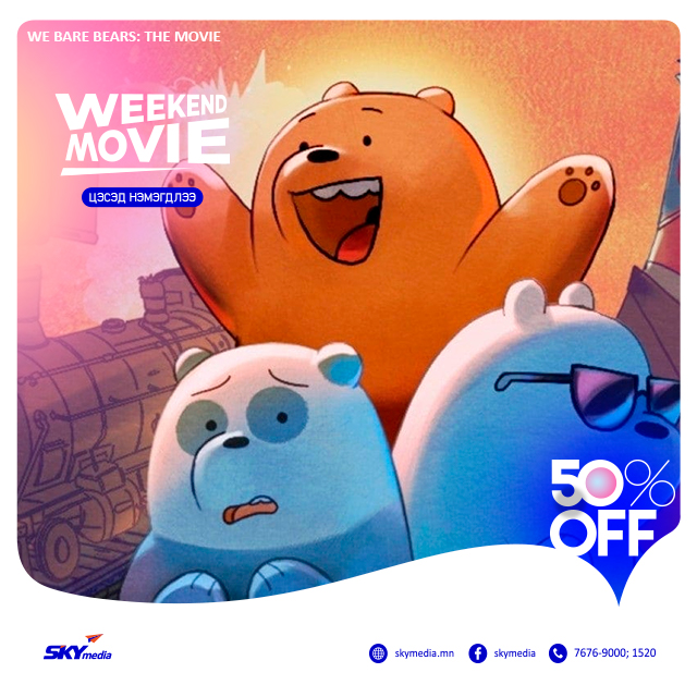 СКАЙмедиагийн видео санд WEEKEND MOVIE кино цэс шинээр нэмэгдлээ. Та тус цэсээс долоо хоног бүрийн амралтын өдрөөр гэр бүлээрээ дэлхийн шилдэг кино, контентуудыг 50%-ийн хөнгөлөлттэй үнээр сонгон үзээрэй.