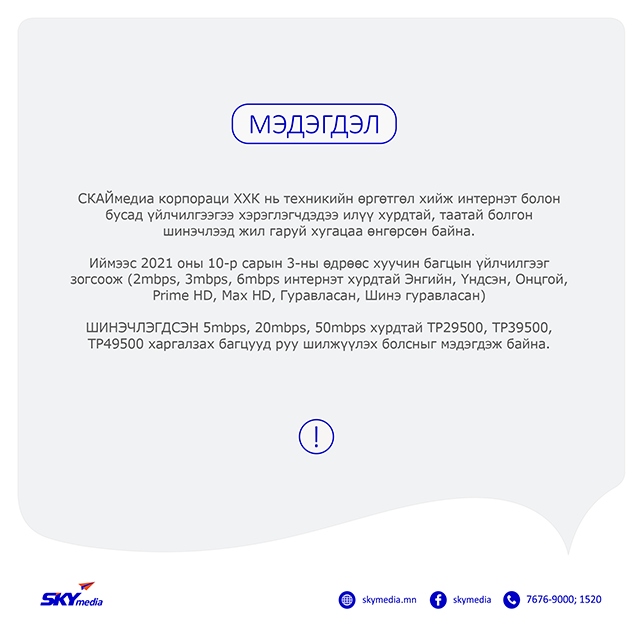 СКАЙмедиа багц шилжүүлэх тухай мэдэгдэл