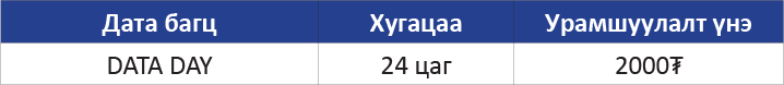 DATA TUESDAY идэвхжүүлэх, үлдэгдэл шалгах