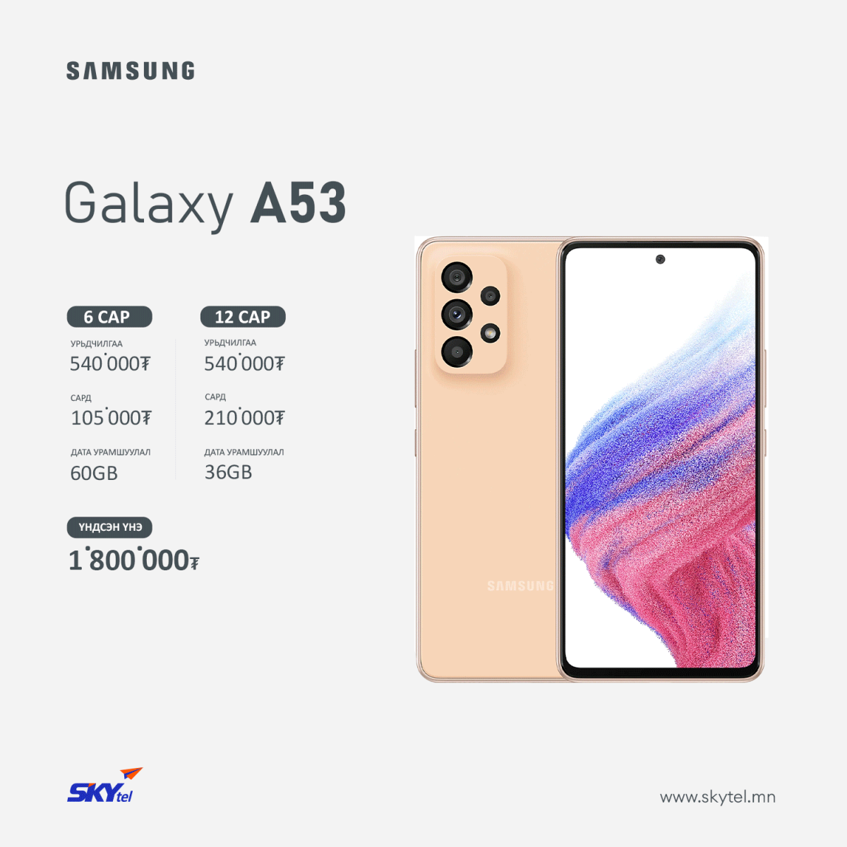 SAMSUNG Galaxy A53 гар утасны талаар дэлгэрэнгүй мэдээллийг энд дарж авна уу.