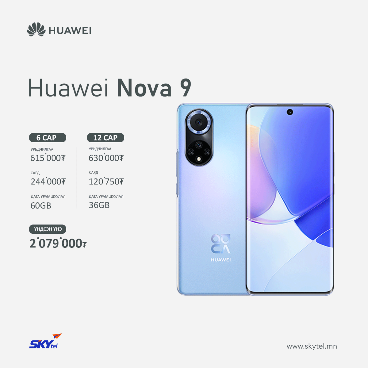 HUAWEI Nova 9 гар утасны талаар дэлгэрэнгүй мэдээллийг энд дарж авна уу.