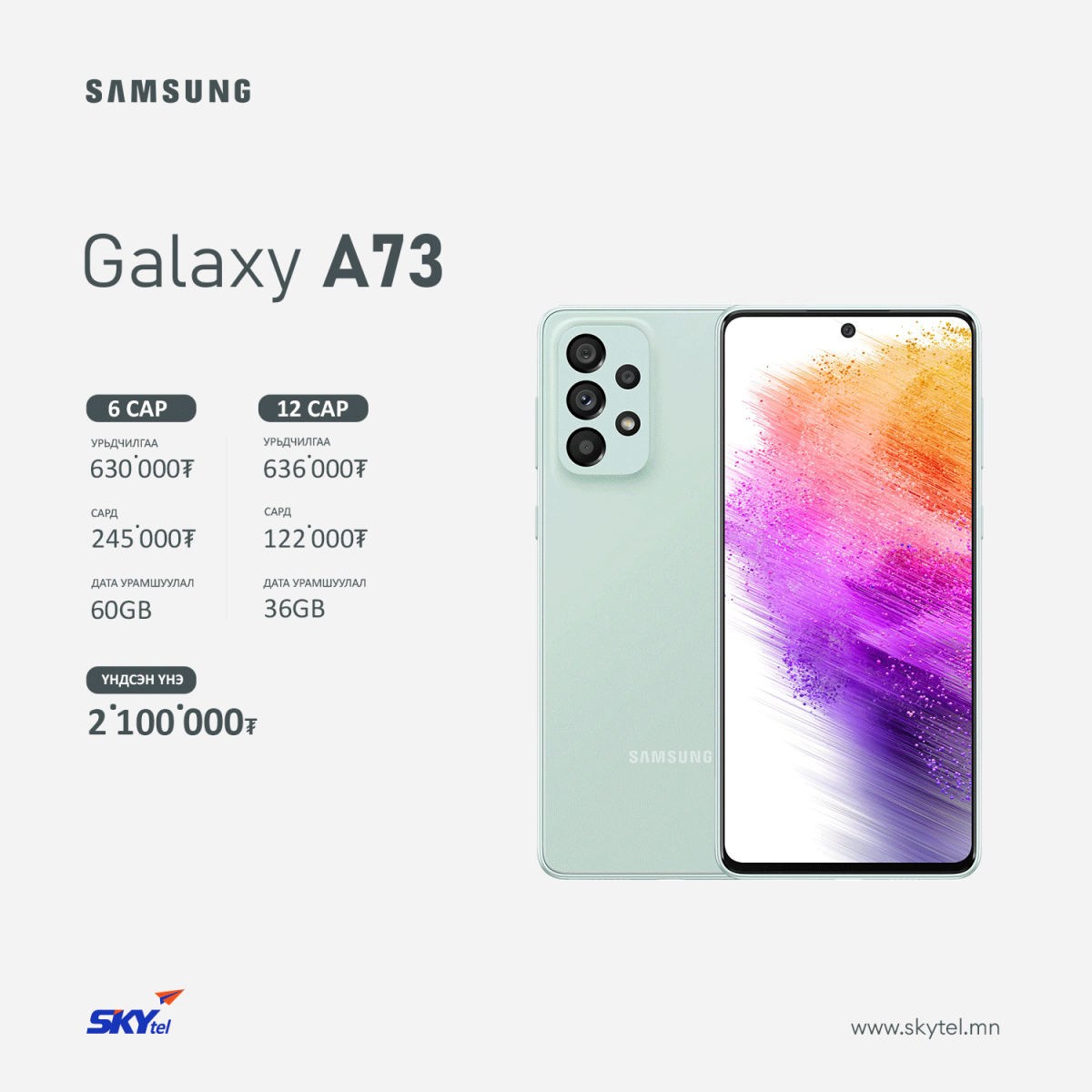 SAMSUNG Galaxy A73 гар утасны талаар дэлгэрэнгүй мэдээллийг энд дарж авна уу.