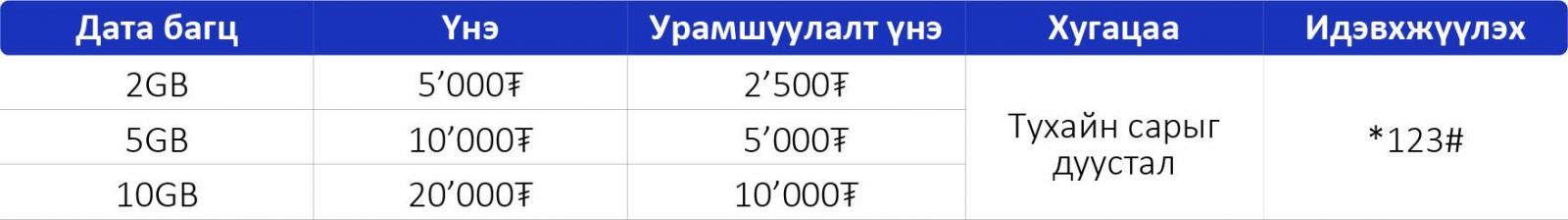 - Багцад дагалдах дата дуусмагц задгай дата төлбөргүй.