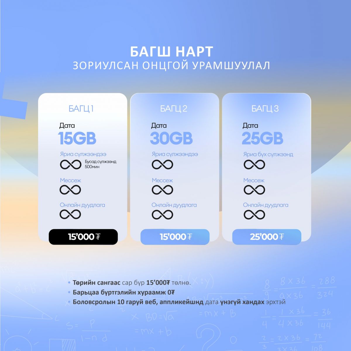 Ирээдүйг бэлтгэж, эрдэм мэдлэгийг түгээж буй багш нартаа зориулсан онцгой дараа төлбөрт үйлчилгээг нэвтрүүллээ. Та Багш дараа төлбөрт үйлчилгээний шинэ дугаараа 0₮-өөр ямар ч БАРЬЦАА төлбөргүй аваарай.