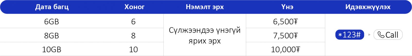 *Нэмэлт ярианы эрх дата багцын ашиглах хугацаанд хүчинтэй байна
