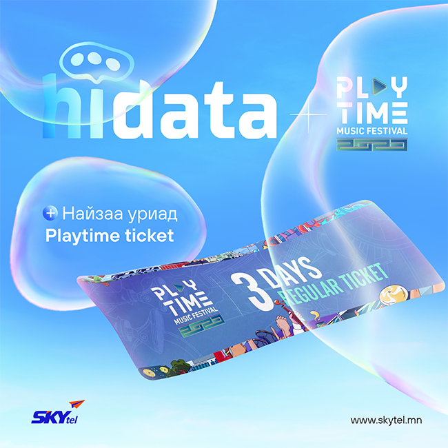Скайтелийн хэрэглэгчид InLive болон HiData үйлчилгээнд 3 найзаа уриад Playtime Festival TICKET авах уралдаанд оролцоорой.