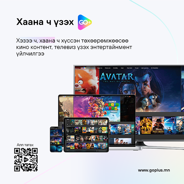 Хэзээ ч, хаанаас ч хүссэн төхөөрөмжөөсөө үзэх кино контент, телевизийн хязгааргүй энтертайнмент аялал GO+ үйлчилгээ.