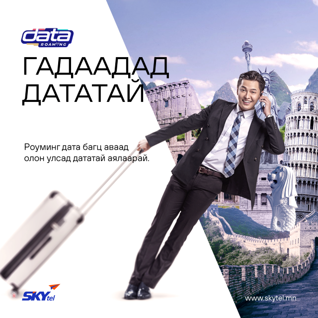 Скайтелийн дараа болон урьдчилсан төлбөрт үйлчилгээний хэрэглэгчид Роуминг дата багцаа аваад гадаадад ч дататай аялаарай.