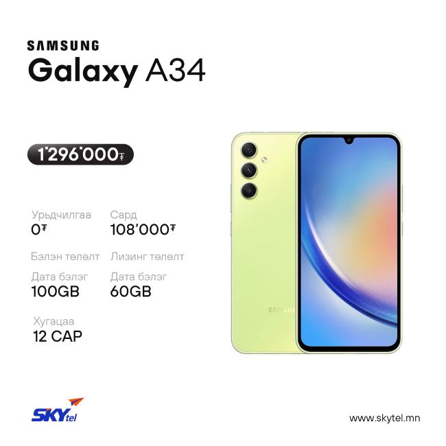 Дэлхийд тэргүүлэгч SAMSUNG брэндийн A series, болон Infinix Note 30 VIP гар утаснуудыг бэлэгтэй, урамшуулалтай, лизингтэйгээр худалдан аваарай. Гар утас бүр 100GB хүртэлх дата бэлэгтэй.