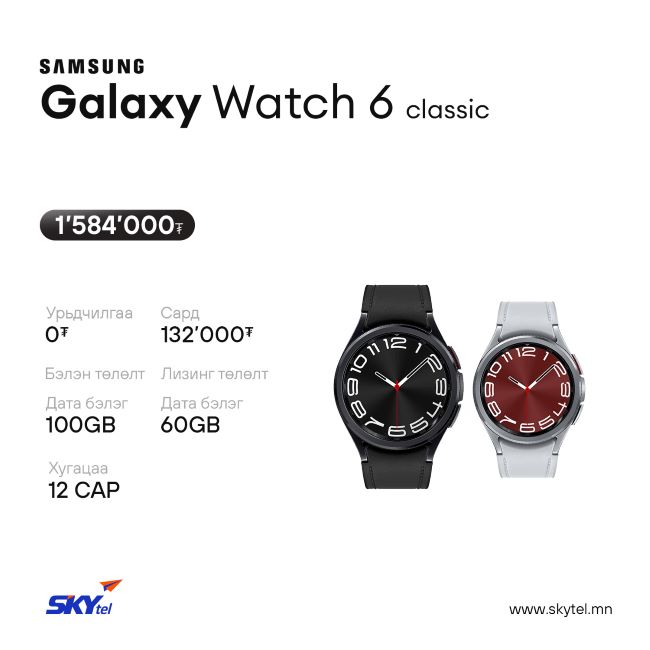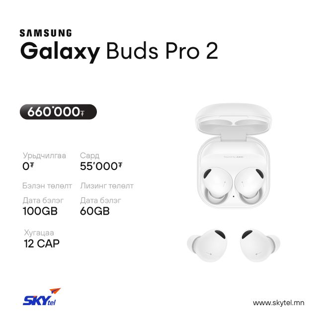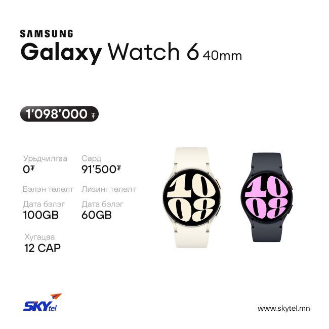 Мөн SAMSUNG брэндийн Galaxy Watch ухаалаг цаг болон Buds Pro чихэвчийг хүүгүй, шимтгэлгүй, барьцаа хураамж шаардлагагүй лизингийн таатай нөхцөлтэйгөөр худалдаалагдаж байна.