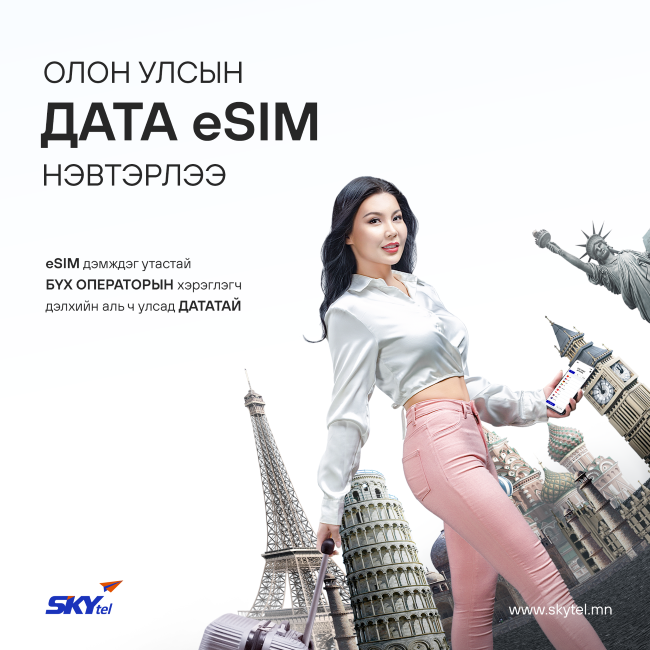 eSIM дэмждэг утастай бүх үүрэн операторын хэрэглэгчид өөрийн хэрэглээнд тааруулан дэлхийн хаанаас ч идэвхжүүлэх боломжтой Олон улсын дата eSIM үйлчилгээг Skytel.mn болон СКАЙтелийн аппликейшн ашиглан хүссэн улс орныхоо дата eSIM - ийг худалдан авах боломжтой.