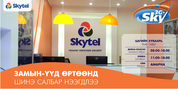 Сэлэнгэ аймгийн Скайтелийн хэрэглэгчид Sky 3G+ үйлчилгээг ашиглах боломжтой боллоо.